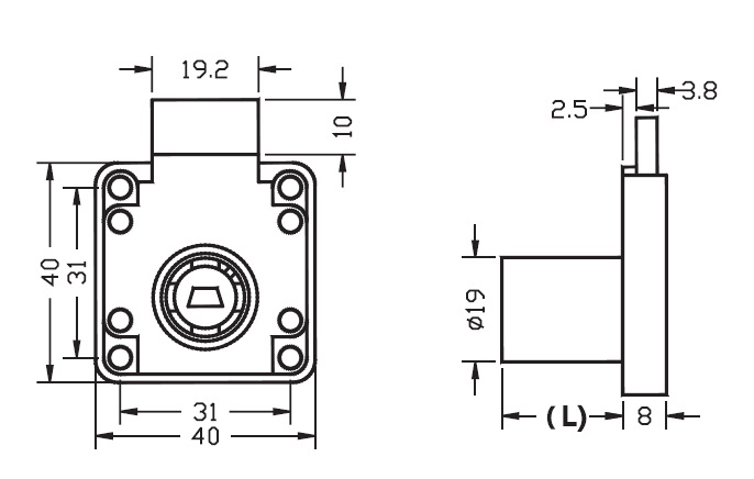 בית מנעול 19X22 מגירה ניקל