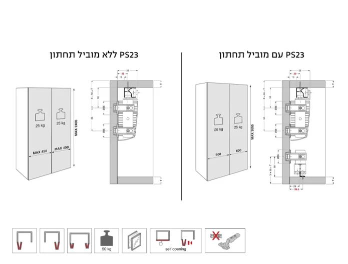 מנגנון פתיחה בלחיצה טאצ למערכת PS23 ימין (פתיחה משמאל לימין